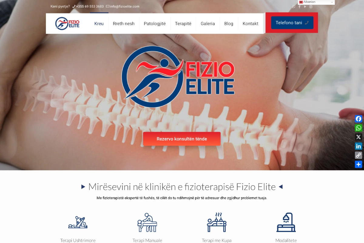 FizioElite tani ka një faqe web të funksionalizuar dhe të optimizuar, që ofron informacion të detajuar për shërbimet e fizioterapisë dhe i mundëson pacientëve të gjejnë shpejt dhe lehtë trajtimin që u nevojitet. Faqja është një burim i rëndësishëm informacioni dhe një mjet i fuqishëm për të rritur ndërlidhjen me pacientët, duke i mundësuar të bëjnë zgjedhje të informuara për terapitë e nevojshme.